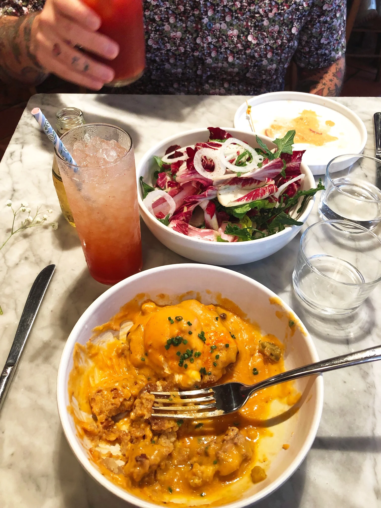 Monday ended up being rainy and gloomy. Luckily we had reservations at Sunday in Brooklyn. It was our first time there and it was worth the wait! (We had tried to brunch there before but the wait was too long. Thank goodness for Resy!) I had the loveliest cocktail and perfect biscuits and gravy, unlike anything I expected! People even dined in the rain under the sidewalk awning. It felt very Parisian. We took a cab home and I curled up in my own bed and slept the rest of the day away.